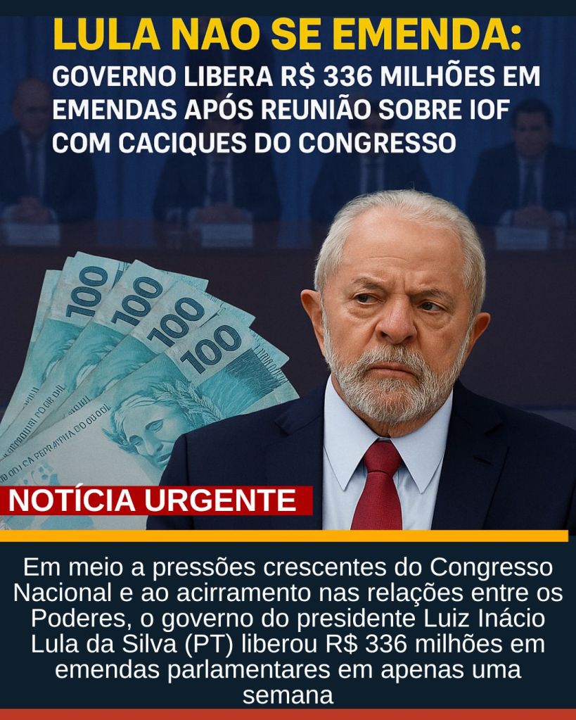 Em meio a pressões crescentes do Congresso Nacional e ao acirramento nas relações entre os Poderes, o governo do presidente Luiz Inácio Lula da Silva (PT) liberou R$ 336 milhões em emendas parlamentares em apenas uma semana. A liberação veio logo após uma reunião estratégica entre os ministros Gleisi Hoffmann (Relações Institucionais) e Fernando Haddad (Fazenda) com os presidentes da Câmara, Hugo Motta (Republicanos-PB), e do Senado, Davi Alcolumbre (União Brasil-AP), para tratar do Imposto sobre Operações Financeiras (IOF) e das pautas econômicas em tramitação no Congresso.